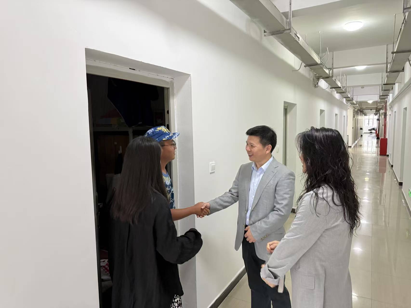 (通讯员:曾家昱)9月20日下午,军训即将结束之际,学院党委书记黄卫华、副书记吕晶以及本科生辅导员前往桂园宿舍区看望慰问2025级本科新生。